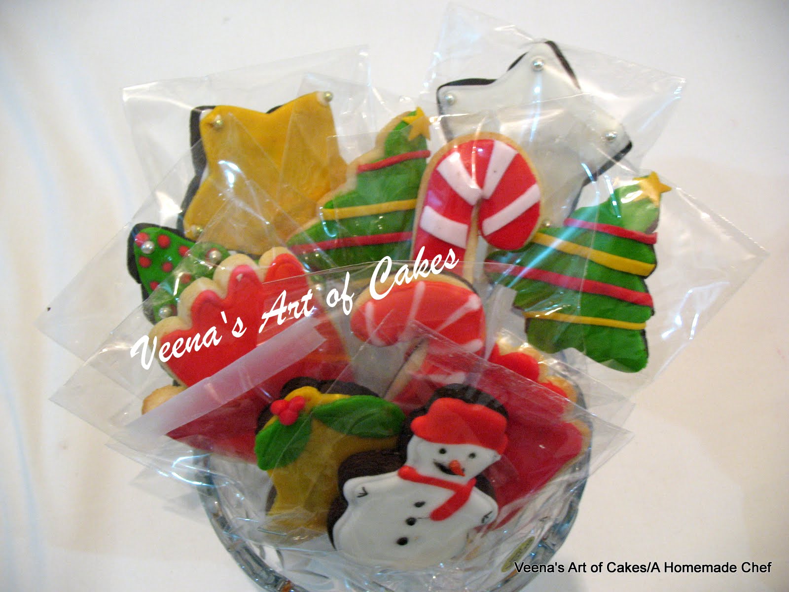Decorating cookies with Fondant and Royal icing - Christmas Tree cookie, Christmas cane cookie, Santa glove cookies, Santa Boots, Snowman cookie, Christmas bell cookie and Christmas Star cookie.