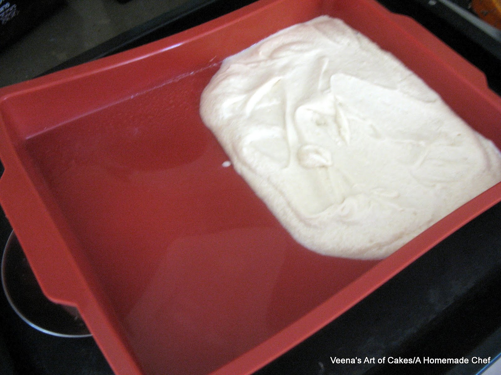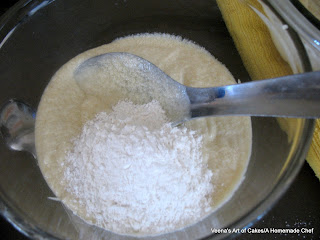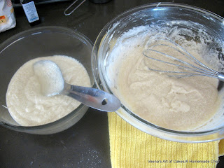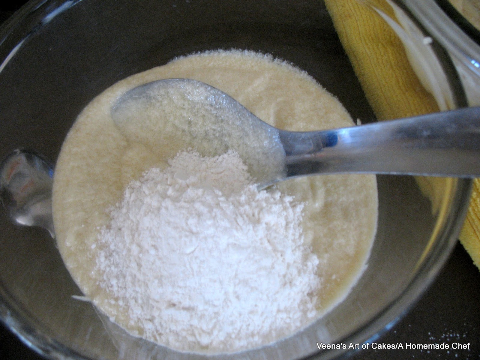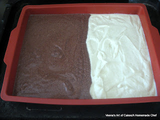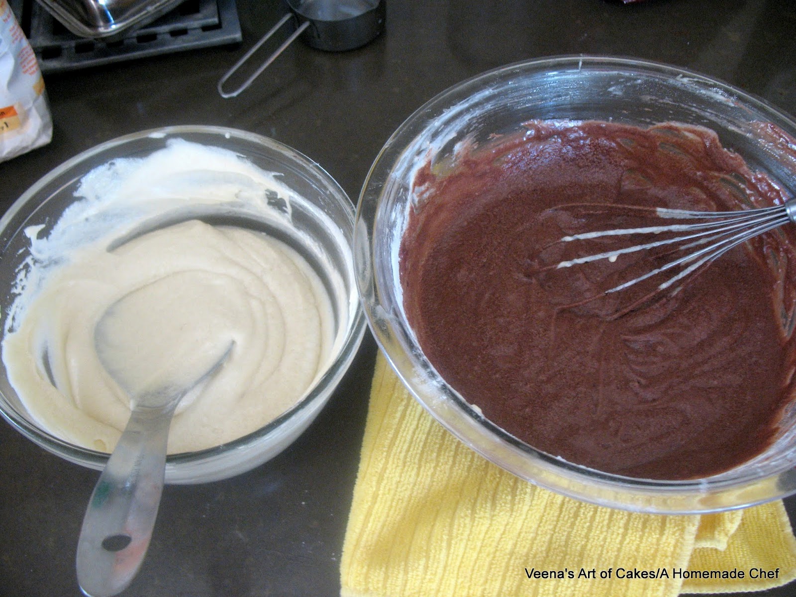 To one bowl add 4 tbsp of the cake flour and mix well. (remember you removed 8 tbsp of flour in the beginning of the recipe) - This is your Vanilla batter