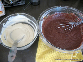To the second bowl add the coco mixture and mix well. this is your Chocolate batter