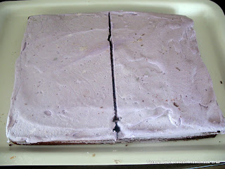 He spread some Vanilla Buttercream over it. (he choose purple because it's my daughters favorite color)