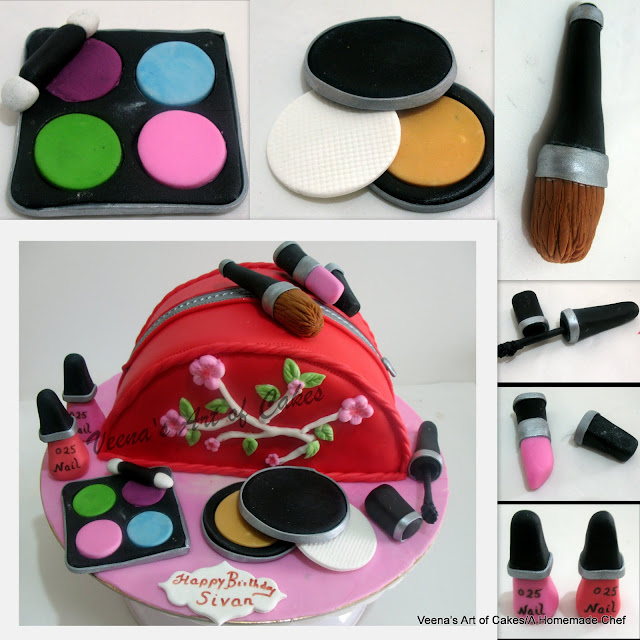 Back to this cake. I was asked to make a pretty round cake with just a compact and nail polish on it.